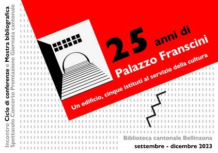 Settembre - dicembre 2023, Biblioteca cantonale Bellinzona: 25 anni di Palazzo Franscini. Un edificio, cinque istituti al servizio della cultura. Porte aperte a Palazzo Franscini e ciclo di conferenze.